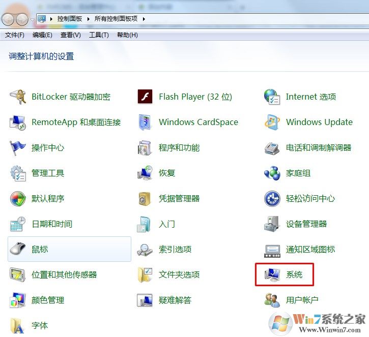 2、左键点击“控制面板”,打开控制面板后,找到“系统”。