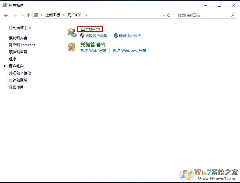 3、进入下一个界面,再点击 用户帐户,如下图;