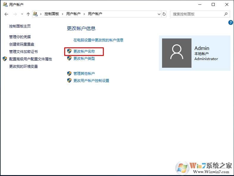 4、接下来看到了吗,点击【更改帐户名称】这一项;