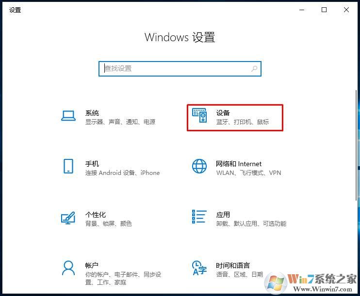 1、打开开始菜单中的设置,然后点击 设备进入;