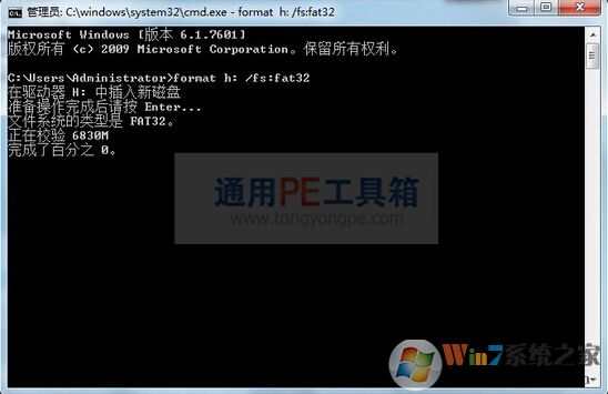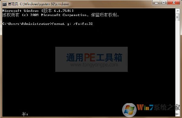 然后在打开的命令窗口中键入“format g: /fs:fat32”(注意这里的g是u盘的磁盘盘符),然后回车;