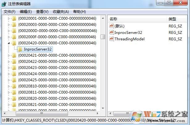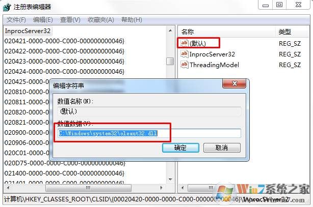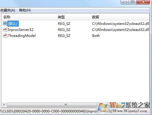 3.如果 “InprocServer32”值不是这个也修改一下修改后如下: