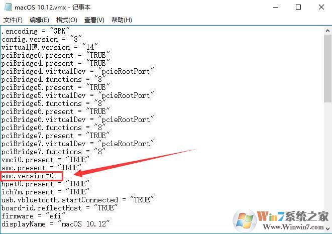 2、右键,用记事本打开,找到“smc.present = “TRUE””这一行,在下面加一行“smc.version=0”,保存退出;