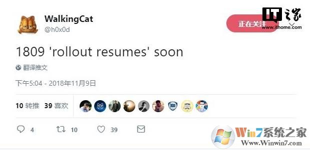 现在根据开发者@h0x0d 爆料,Windows 10 1809版本将很快恢复推送。
