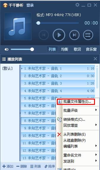 一般来说批量修改标题改成文件名那是最方便的。我们可以使用千千静听软件来自动更改标题为文件名。