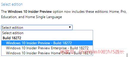 如无特殊需要,一般都会安装Win10专业版,所以请选择第一个版本 Windows 10 Insider Preview - Build 18272 家庭版/专业版/教育版三合一版本,注意在安装过程中要选择正确的版本。