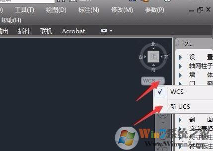 2、点击WCS下拉三角按钮,在其中选择新UCS坐标 按钮,如图: