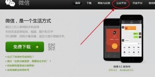 4、注册公众号的方法,同样在微信官网,点击右上角的公平台;