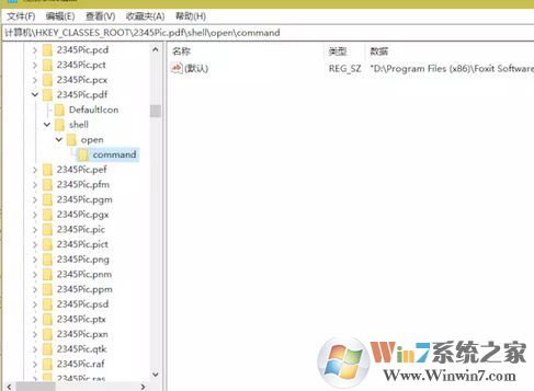 所以就是:HKEY_CLASSES_ROOT\2345Pic.pdf\shell\open\command