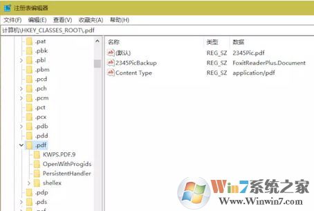 2、在注册表中找到打开:HKEY_CLASSES_ROOT\.pdf