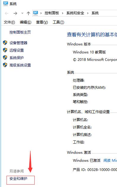1.打开win10系统的控制面板:右键桌面“此电脑”,打开属性,然后打开安全和维护这个链接