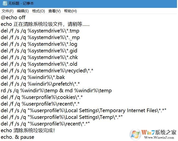 以上代码包括对临时文件、日志文件等多数情况下没有用的文件的清除,可以说是安全可靠的,所以大家可以写一个符合自己需要的垃圾清理批处理文件。