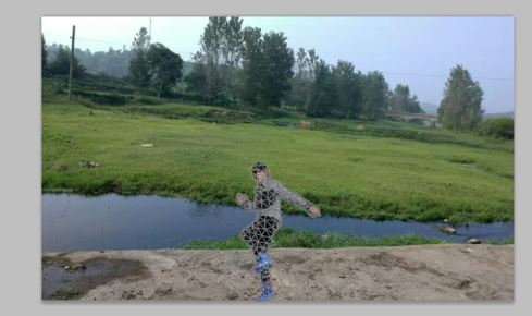 4、抠出来的人物上出现网格线之后我们就可以进行变形!