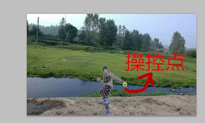 5、我们点击人手时,发现有一个点,这就是我们的操控点,当我们将手向上移动时,我们发现我们的整个图像都是整体向上移动的,那是因为我们缺少操控点,多几个固定点,我们再试试,就行了。