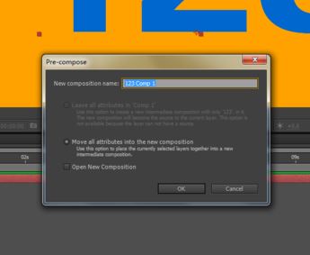 2、选择文字成Ctrl+shift+c键将文字层打成预合成(这样做的目的是为了方便使用笔刷工具)。