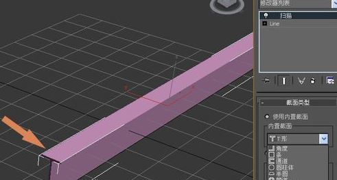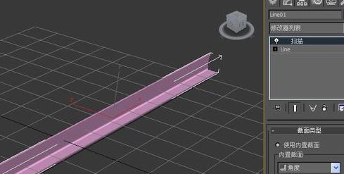 4、在右边的【扫描命令】面板上,在内置截面的下拉列表中,可以选择不同的截面,比如这里选择T型的截面,可看到直线变为T型结构,如图: