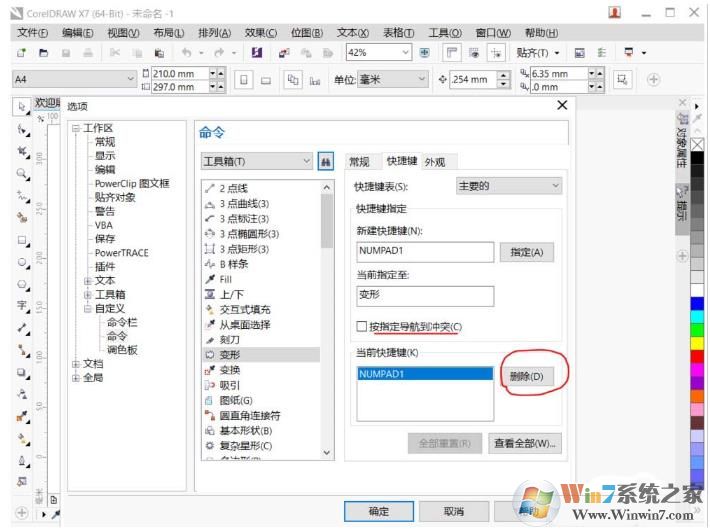 6、如果指定的快捷键有冲突,可以删除原有快捷设置;