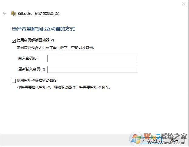 2、然后我们选择解密的方式,一般小编推荐使用密码来解锁驱动器;