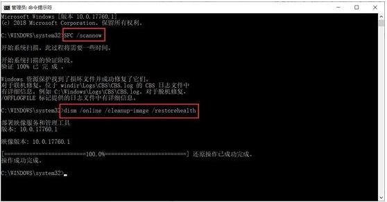 扫描完成后发现有文件损坏被修复,如下图所示。然后再输入“dism /online /cleanup-image /restorehealth”。
