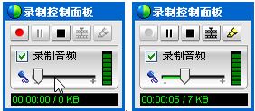 指定文件后,WebEx会出现录制面板(下图1)。上面左3个按钮为:录制、暂停、结束。下面可以设定是否录音,及麦克风音量。