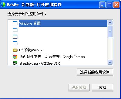在 WebEx Recorder 界面点击第一个按钮(如下图),或菜单:File→Open Application: