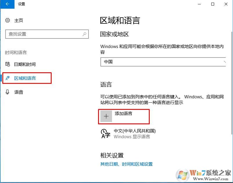 3、之后选择区域和语言,并且点击右侧,添加语言;如下图所示 www.xiuchufang.com 整理。