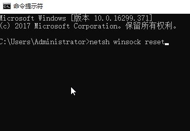 2、在弹出的命令提示符窗口中,输入“netsh winsock reset”,然后按回车,重置完成后会提示需要重启电脑,此时我们直接正常重启电脑即可。