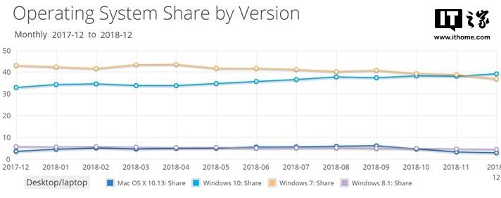 1、根据Netmarketshare的数据,在2018年12月份,Windows 10占据39.22%市场份额,最终超过了Windows 7,后者占据了36.9%的市场份额。Windows 8.1份额降到了4.45%。