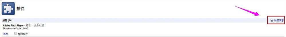 2、在UC插件设置界面找到Adobe Flash Player ,点击右侧的【详细信息】,如图: