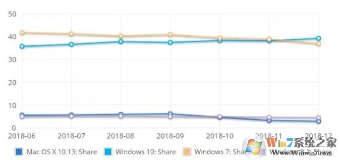 根据市场调研机构Netmarketshare送出的数据显示,2018年12月份操作系统市占率分布情况显示,2018年12月,Windows 10占据了39.22%的市场份额,而Windows 7占据的是36.9%市场份额。从直观上的对比来看,12月份的市场份额上,Windows 10是超越了Windows 7。而在去年11月,两者市场份额占比分别为38.14%和38.89%。