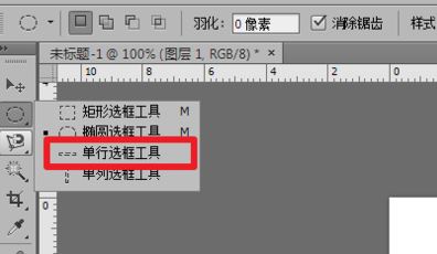 另外一个方法就是使用【单行/单列选框工具】,使用该工具画出1像素的横线/竖线,如图: