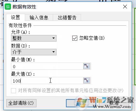 ③在“最小值”“最大值”中分别输入0、100。