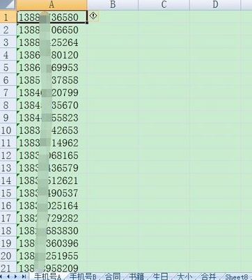 4、当我们点击“手机号A”这个单元格时,就会跳转到指定的“手机号A”这个sheet,如图: