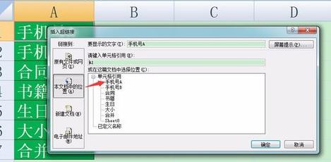 2、在超链接选项中,选择【本文档中的位置】,并在右边【单元格引用】下选择自己需要指定跳转到的工作表,如图: