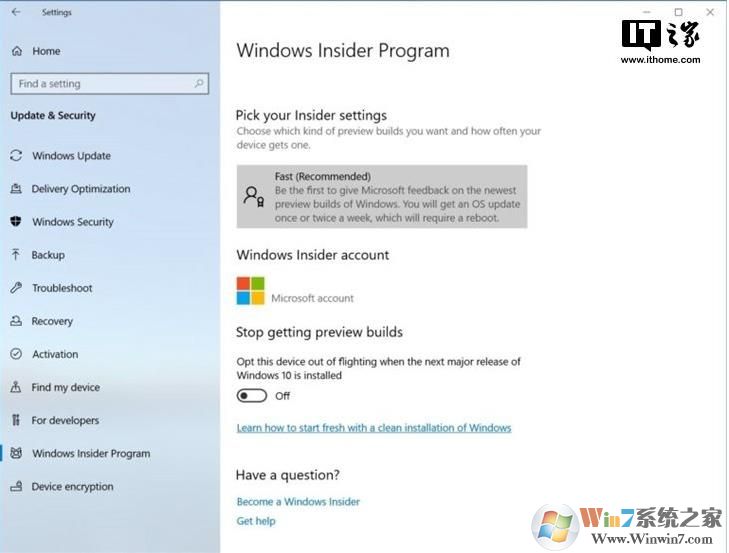 更简单的Windows Insider程序设置页面