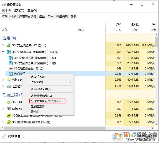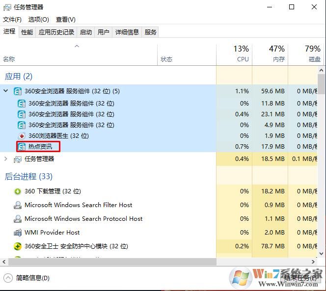从任务管理器中我们可以看到,这个是 360安全浏览器,服务组件,看来这个热点资讯是360浏览器的弹窗了。