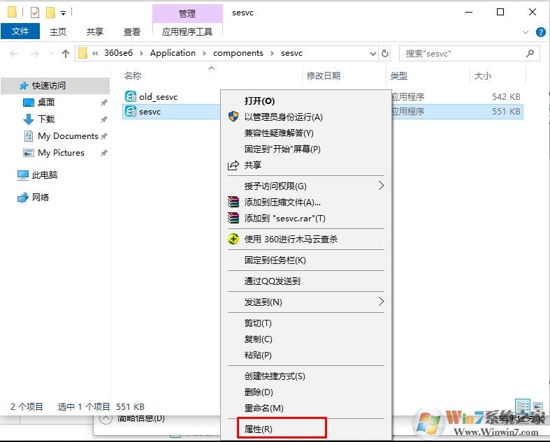 2、右键点击sesvc,选择属性;www.xiuchufang.com Win11系统之家整理。