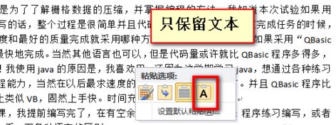 4、粘贴复制内容到新建好的空白文档!这里必须注意:粘贴后,选择【仅保留文本】,这样所有文字的格式将会被移除,如图