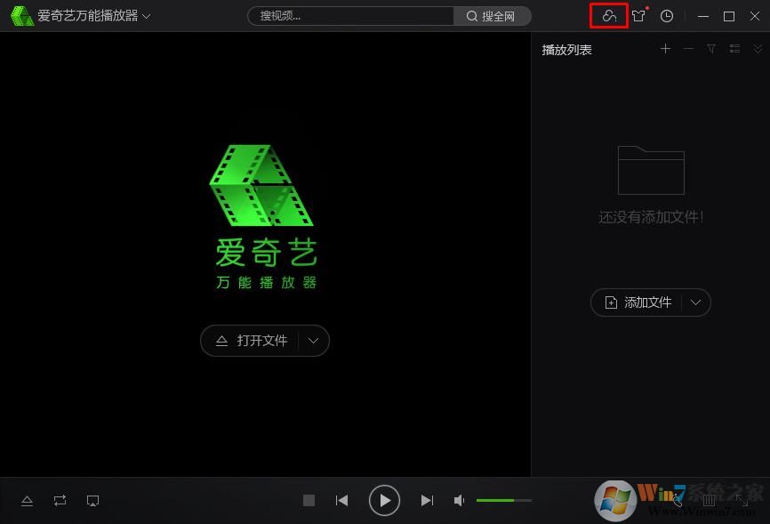 1、下载并安装爱奇艺万能播放器,打开之后,点击右上角的“百度云”,如下图