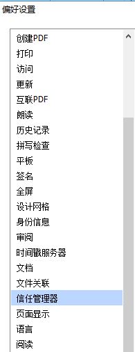2、在偏好设置左侧点击【信任管理器】,如图: