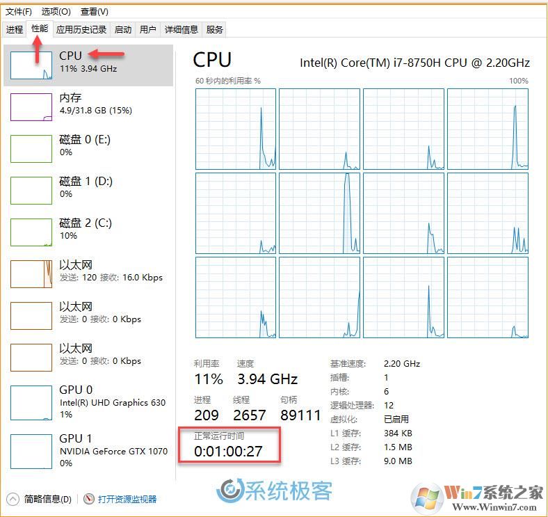 要查看 Windows 10 设备开机时长,最简单的方法莫过于使用「任务管理器」: