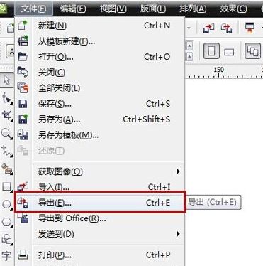 4.接着在cdr中点击“文件”>“导出”按钮;