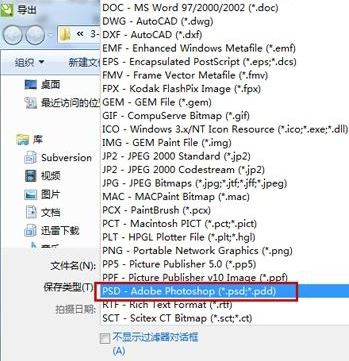 5.在导出界面格式选中psd,点击“导出”,如图: