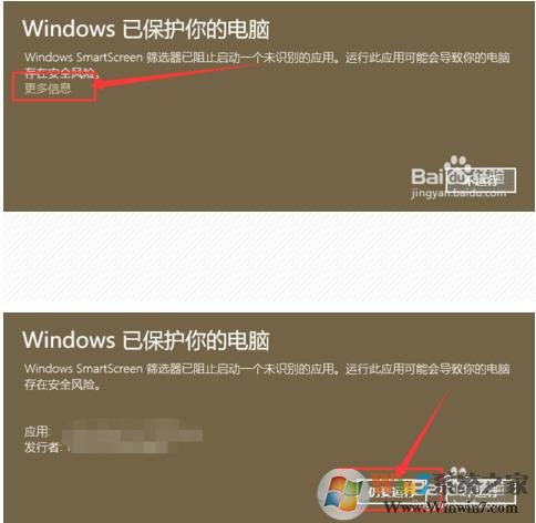 3、这时我们再选择不执何任何操作,也就是关闭Windows SmartScreen筛选器,关闭之后我们再运行软件就不会再出现类似提示了。