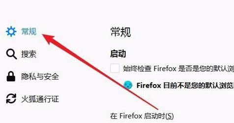 3、这时会打开Firefox浏览器的选项窗口,点击左侧边栏的“常规”选项卡,如图所示: