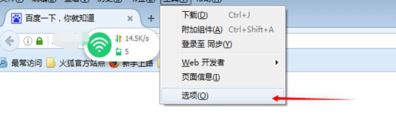 2.在最上面有一行菜单,上面有文件,编辑等等选项,我们处理浏览器的问题都是要通过这一栏菜单的,在后面有工具二字,我们在工具里找到最后一个,叫做选项的内容,点击进入。