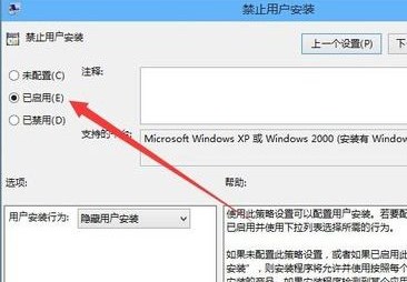 6、双击可打开禁止用户安装的编辑窗口,可以看到该项设置为已启用,这就是导致不能正常安装软件的原因;