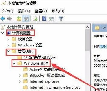 4、在本地组策略编辑器窗口中,依次点击计算机管理/管理模板/Windows组件菜单项;