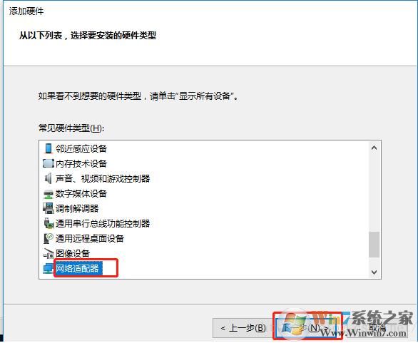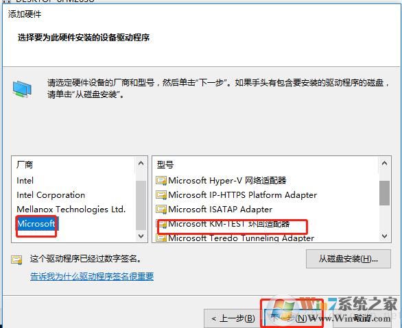 6.选择左侧 Microsoft,右侧*环行适配器,看下图