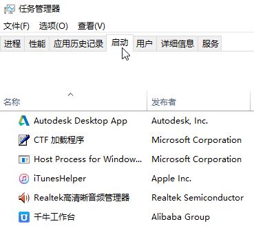2、打开任务管理器,切换到【启动】选卡,如图: